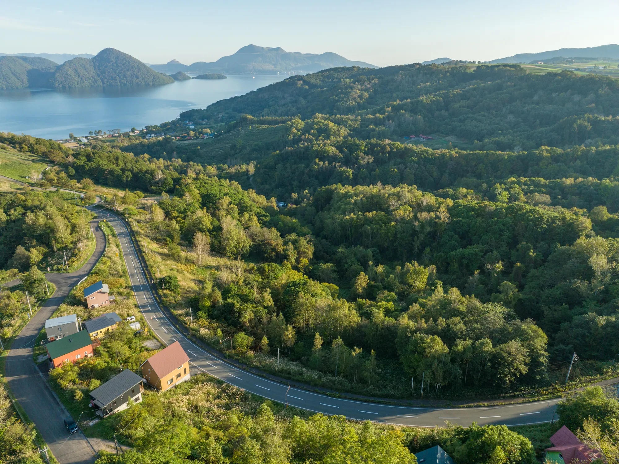 The topography allows for some stunning building platforms throughout the site. Lakes views are maximized throughout the site.The bottom parcel has a large flat area that protrudes out over a ravine with nice lake views. This is where you will find the onsen bore. The attractive part of this is there is piping infrastructure from the main source up the hill to the top parcel.