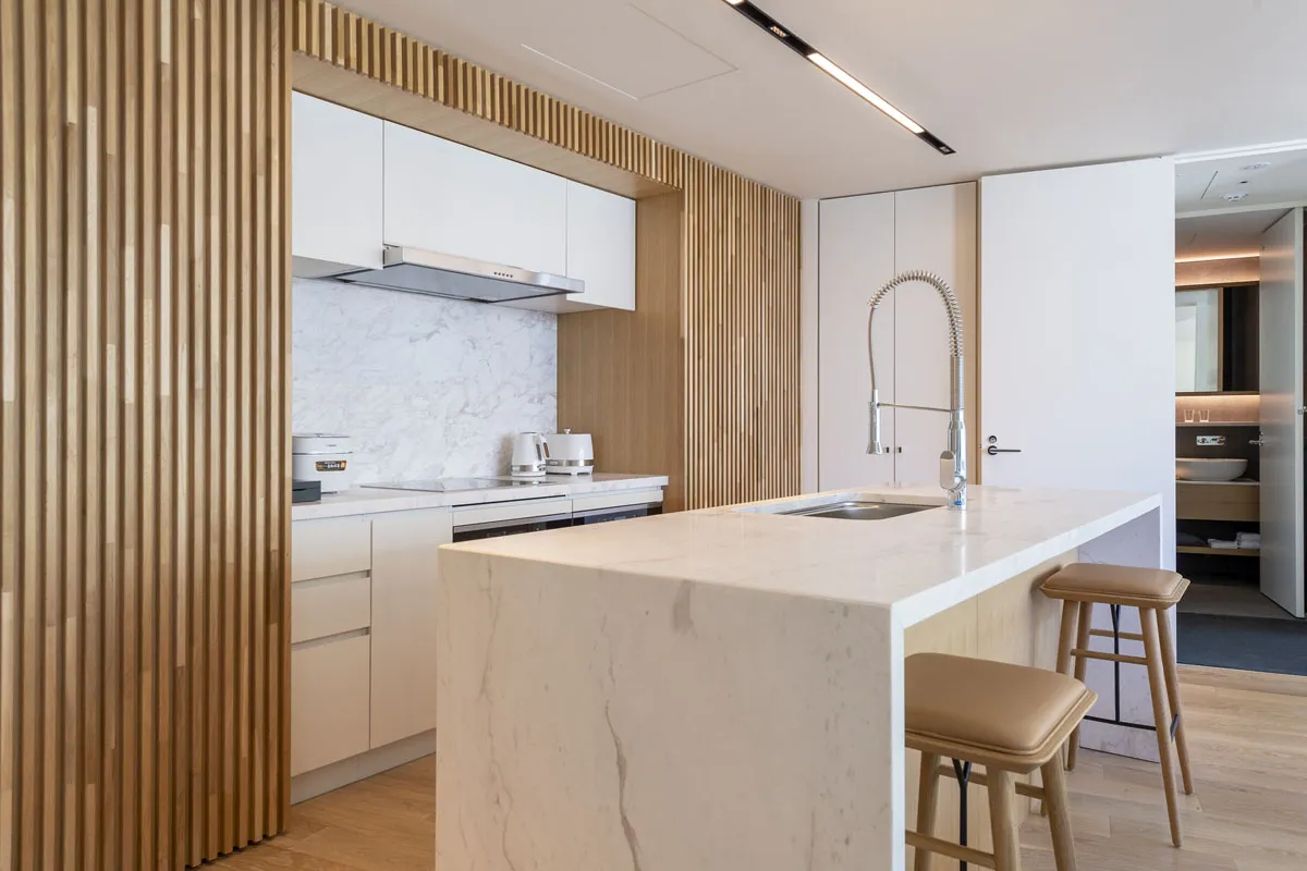 SKYE Niseko 668 is a 2 bedroom, 2 bathroom single key apartment that boasts Hirafu Alpen ski slope views. The layout is spacious with the living/dining/kitchen all open plan with stunning ski hill vistas through wall to wall glass. All bedrooms are ensuited.